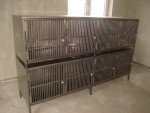 KLATKI NA ZWIERZĘTA 1. Klatka pojedyncza o wym 1200x700x600mm z możliwoscią podziału na dwie mniejsze 2x 600x700x600- bez szuflad 2. Zestaw 8 klatek piętrowych z możliwością dalszej rozbudowy o wym. całkowitym 2400x1400x600 oraz wadze 175kg - bez szuflad - w komplecie uchwyty na kroplówki, - boksy wyścielane gumową matą izolacyjną, - budujemy klatki na podany wymiar tylko z materiałów kwasoodpornych, - zdjęcia podglądowe. |